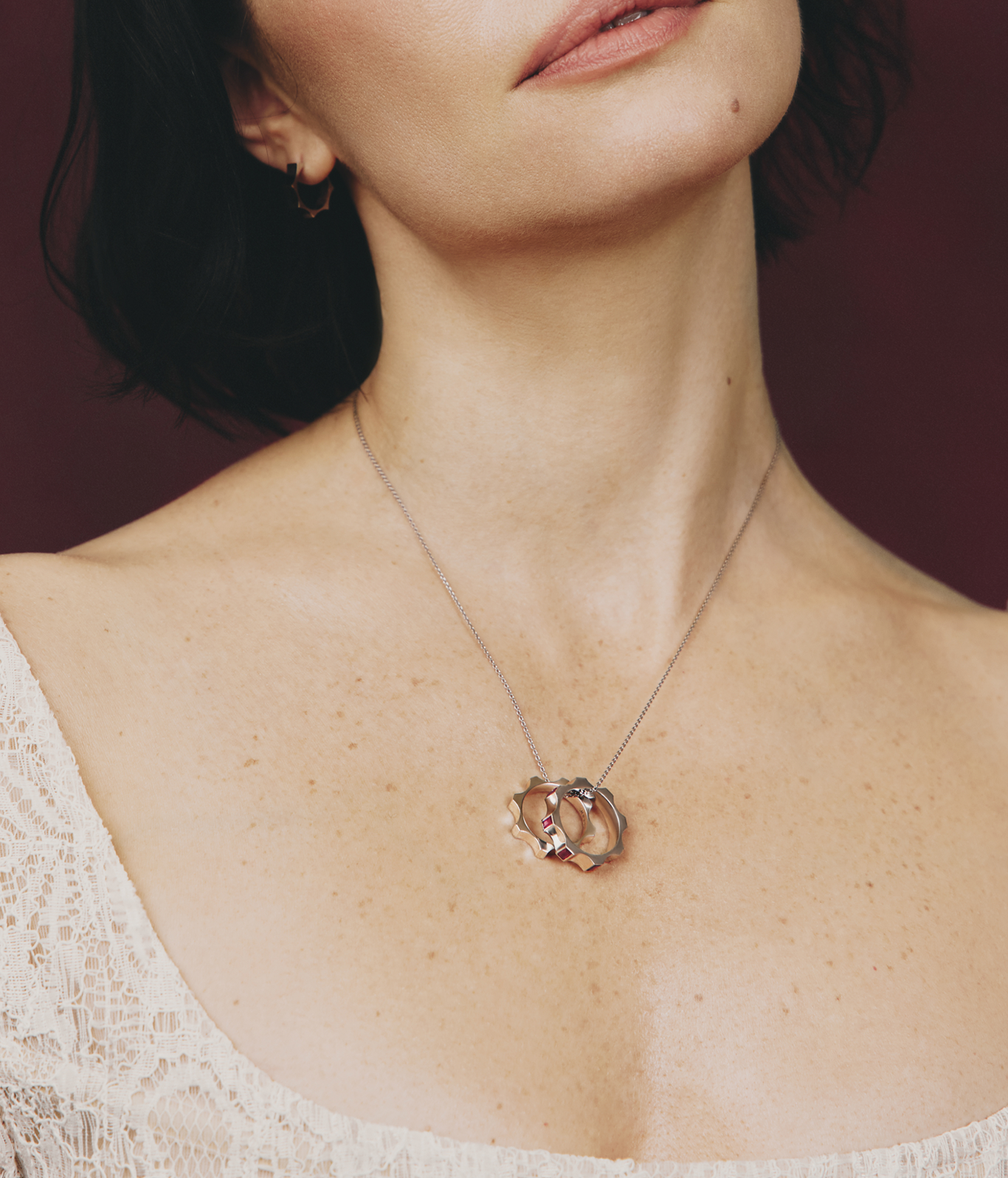 Белое золото 18 карат с рубинами | Высота: 4 mm | Масса: 7.25 g