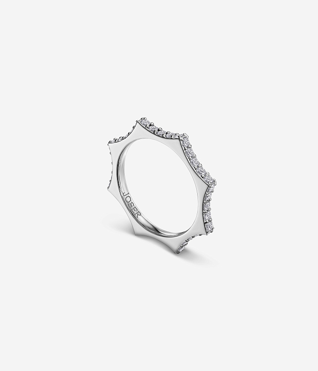Кольцо «Парфенон», белое золото 18 карат, бриллианты, 2 мм