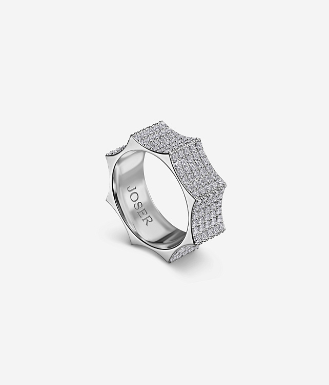 Кольцо «Парфенон», белое золото 18 карат, бриллианты, 8 мм