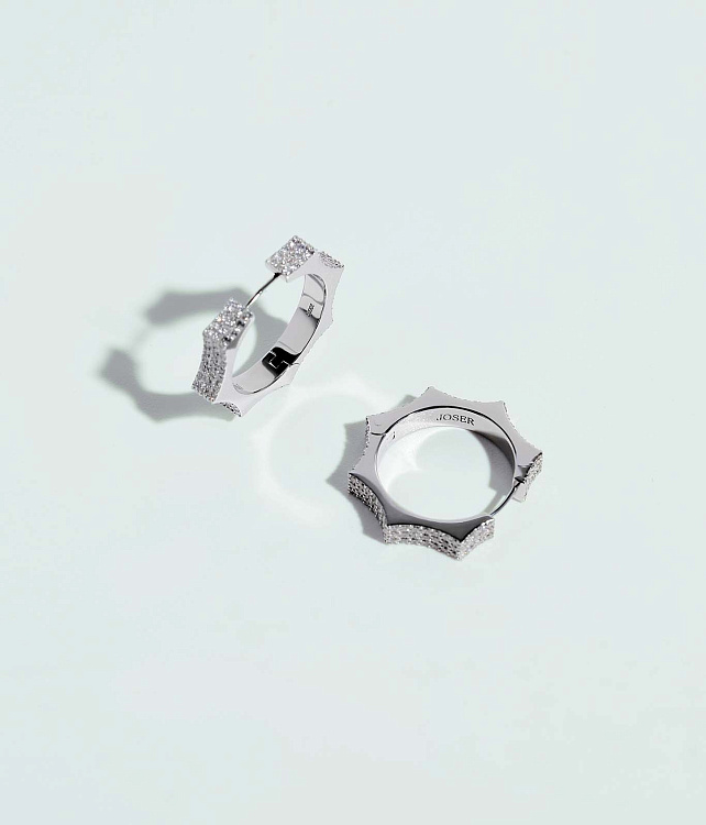 Серьги «Парфенон», белое золото 18 карат, бриллианты, 4 мм, М