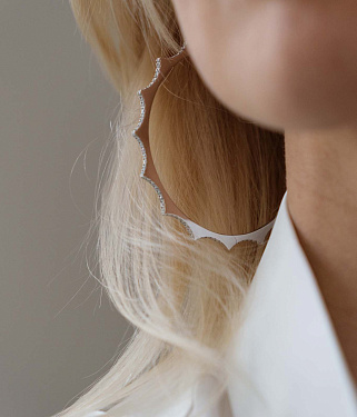 Серьги «Парфенон», белое золото 18 карат, бриллианты, 2 мм, XL