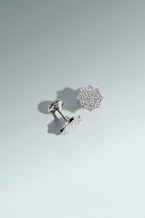 Пусеты «Парфенон», белое золото 18 карат, бриллианты, 10 мм