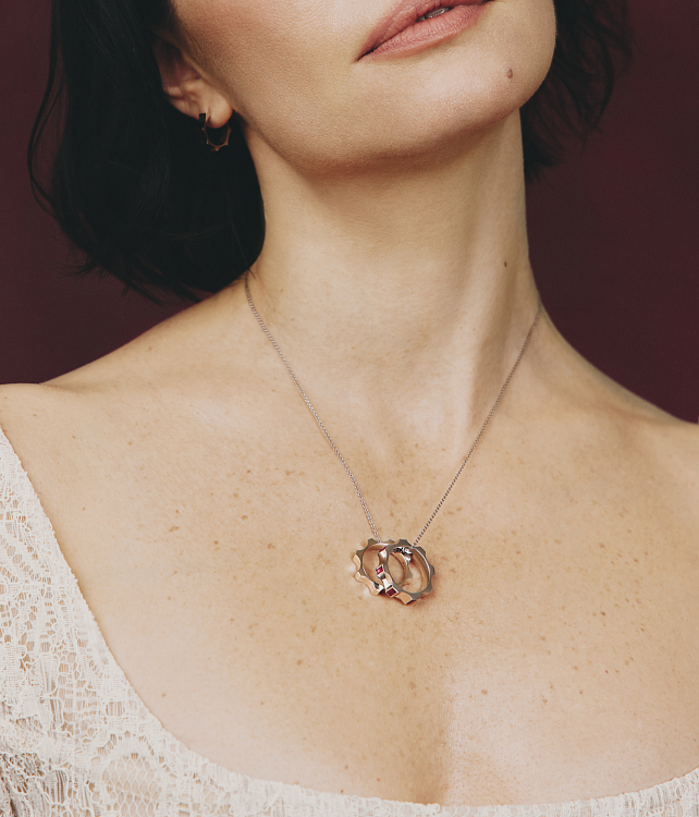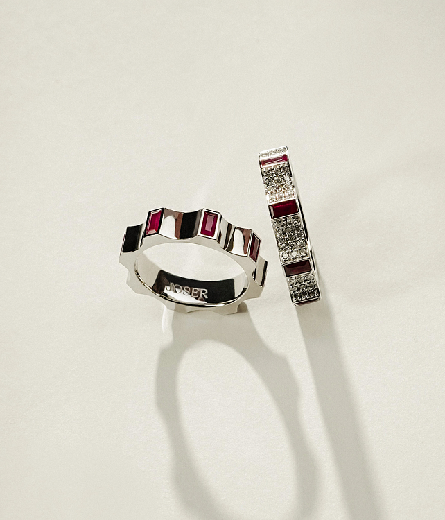 Белое золото 18 карат с рубинами | Высота: 4 mm | Масса: 7.25 g
