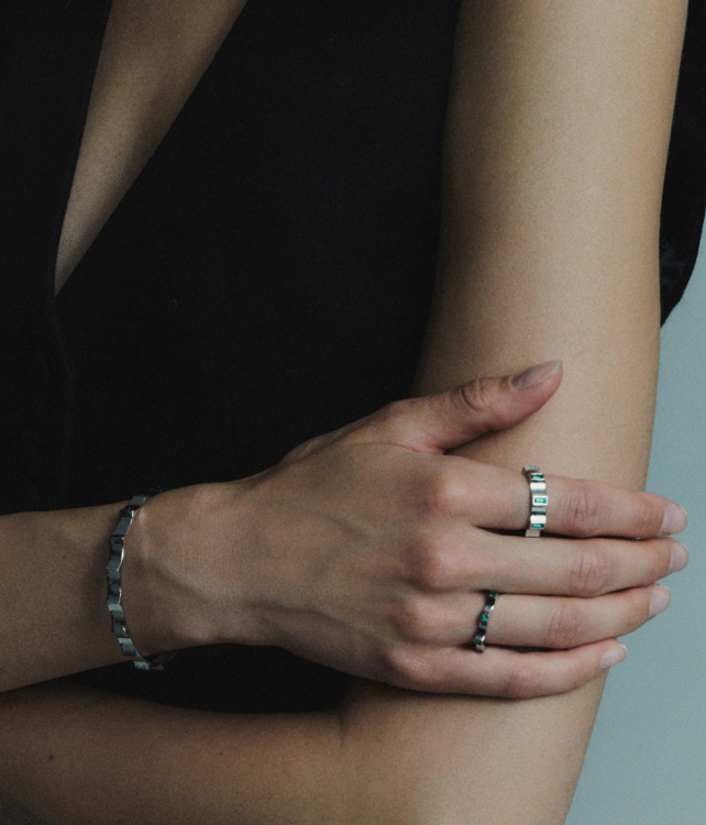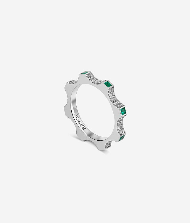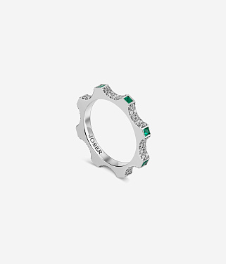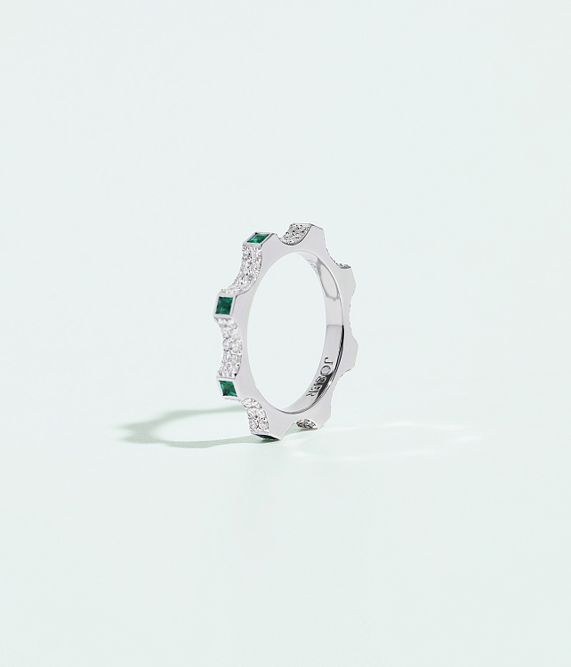 Белое золото 18 карат с бриллиантами и изумрудами | Высота: 2 mm |Масса: 4.1 g