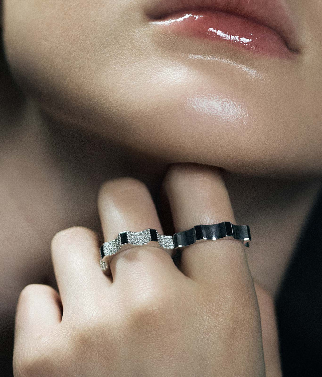 Белое золото 18 карат с бриллиантами и черными бриллиантами | Высота: 4 mm | Масса: 7.25 g