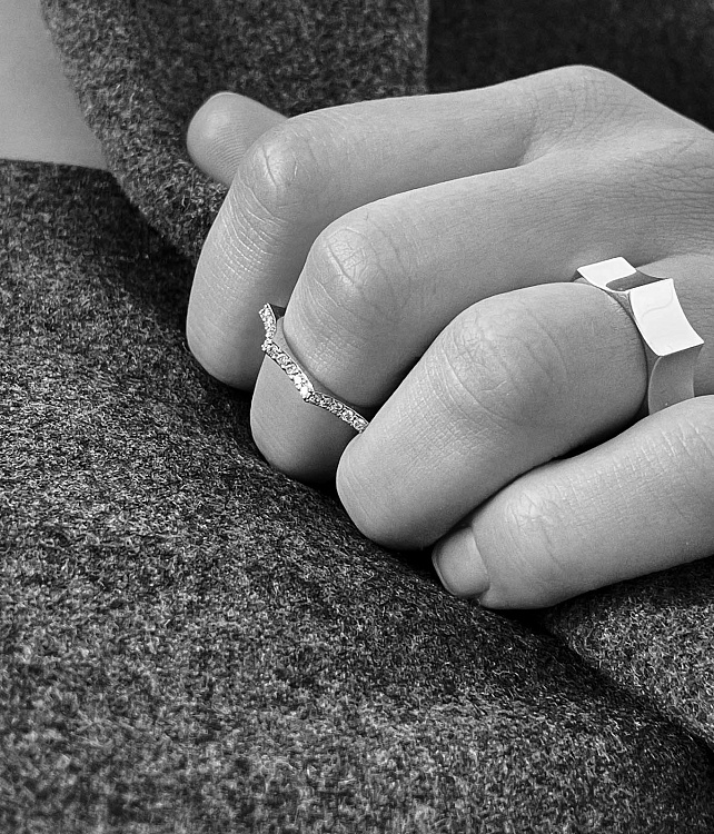 Кольцо «Парфенон», белое золото 18 карат, бриллианты, 2 мм