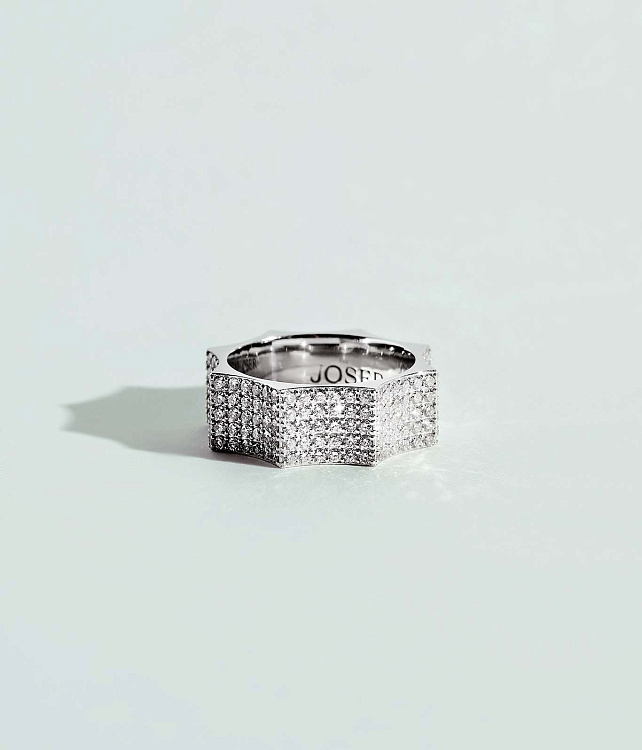 Кольцо «Парфенон», белое золото 18 карат, бриллианты, 8 мм